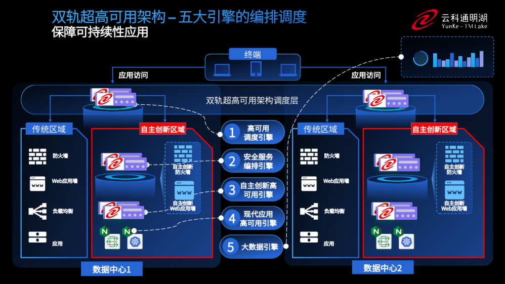 为实现双轨超高可用架构信创区和非信创区的跨域协同,实现信创区域和非信创区域的平滑过渡,jiuyou.com通过五大引擎实现多层次的应用可持续性。